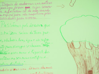 Fiquei também agradavelmente surpreendida ao perceber que vários meninos do 5º B sabiam o nome científico de muitas árvores observadas, como foi o caso da David Seita e da Carolina Miragaia...esta última andava à procura do nome cientifico da Tipuana tipo, aliás, penso que foi o Kelson que disse termos uma árvore desta espécie, mesmo do lado de fora da janela da nossa sala...mesmo ao lado da nossa sala de aula nós podemos observar uma Tipuana tipo e verificar que tem umas sementes que "voam em espiral para se afastarem da árvore mãe, pois assim têm mais hipóteses de sobreviverem já que não competem pelos mesmo nutrientes" (Martim, David e Kelson).Dos trabalhos apresentados destaco o da Carolina Miragaia, Diana Silva e Ana Lúcia Gonçalves pela originalidade na apresentação do poster e pelas respostas adequadas...no entantando temos ainda muito, mas mesmo muito que aprender a trabalhar em grupo...
